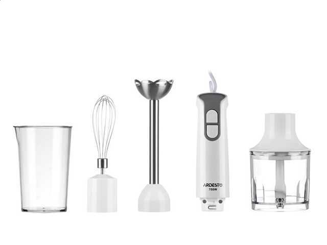Блендер ARDESTO HBL-143 мощность 700Вт, измельчитель, объем 0.3л, венчик, чашка 0,6 л, цвет белый