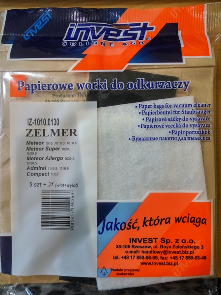 Комплект бумажных мешков для пылесоса Zelmer 3000.0050 12002889, код IZ-1010.0130 - Комментарии